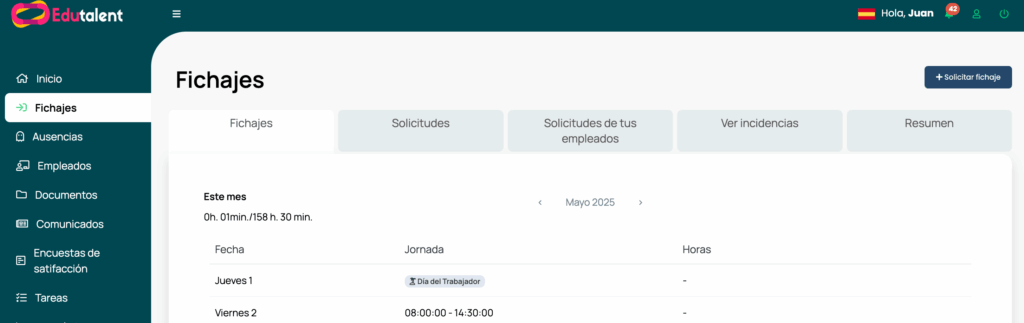 Una vez lo hagas, tu responsable aprobará el fichaje y quedará computado en tu horario.